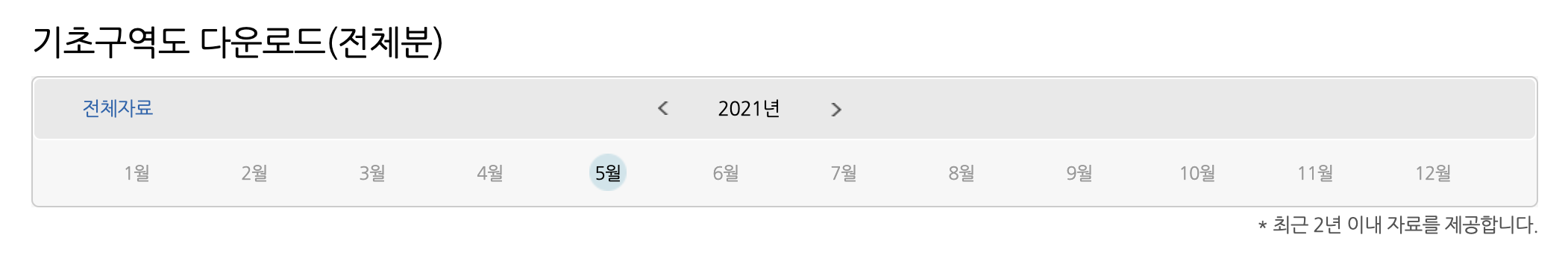 저는 2021년 5월 데이터를 받았습니다. "5월"을 누르면 다운 받을 수 있습니다.