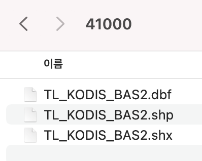 서울특별시 > 11000 폴더엔 위와 같이 dbf, shp, shx 파일이 있습니다.