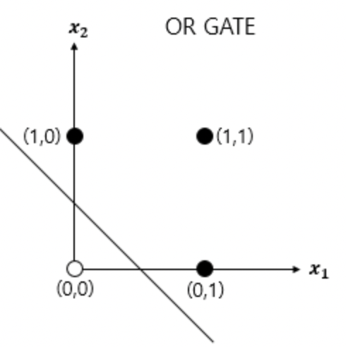 OR 조건을 이용해 두 개의 입력이 모두 0인 경우에는 출력 값이 0, 나머지 경우에는 모두 출력 값이 1이 나오게 함.