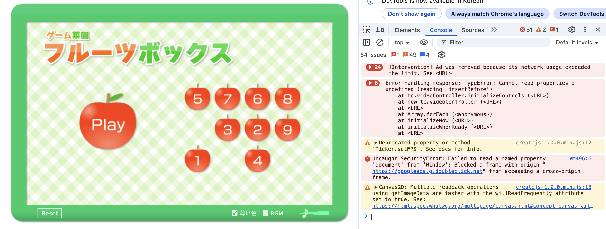 無料ゲーム「フルーツボックス」